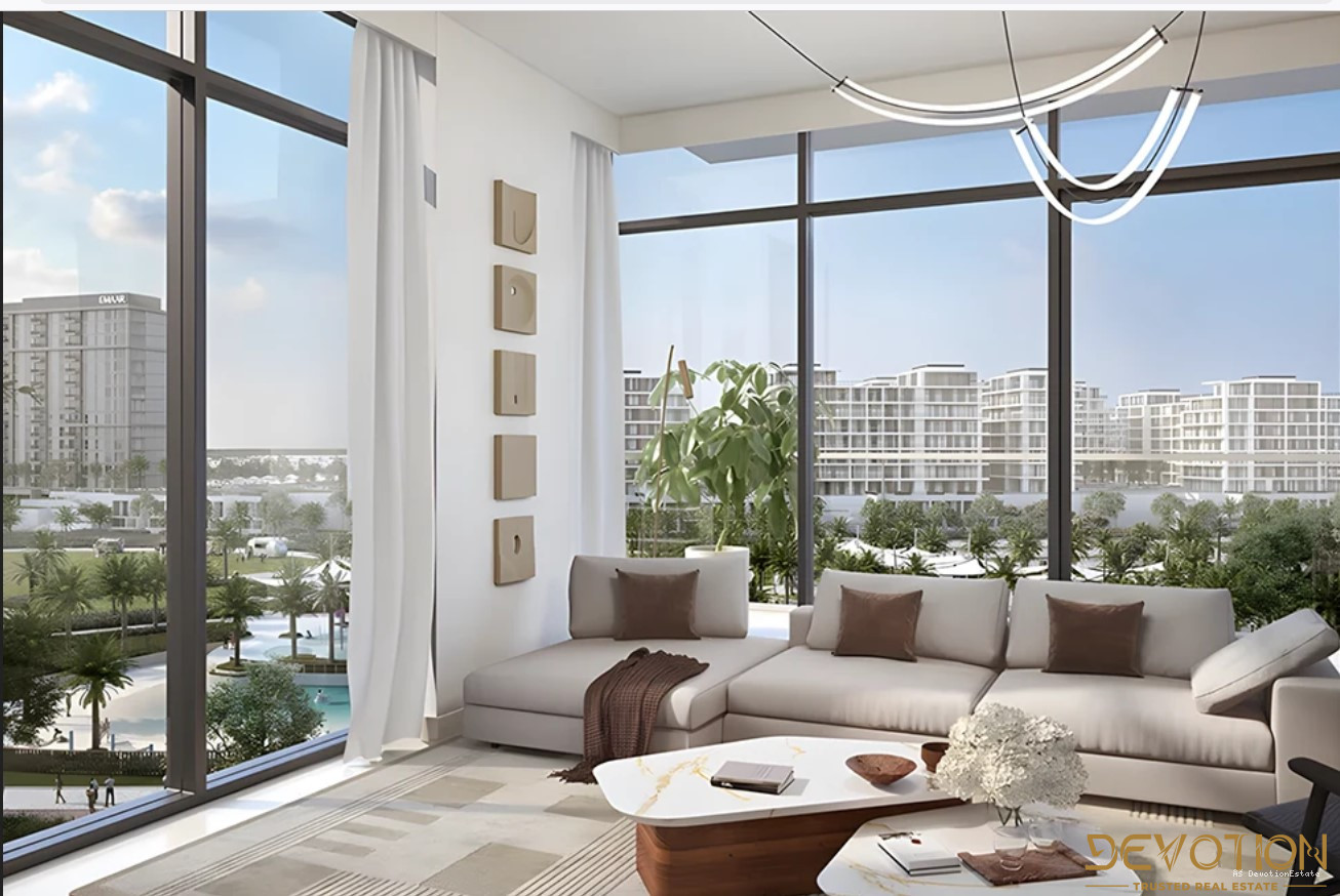 Each residence is crafted with high‑quality finishes, open‑plan living spaces and generous balconies that offer views of landscaped surroundings, the nearby golf course, and in many cases the Dubai skyline.